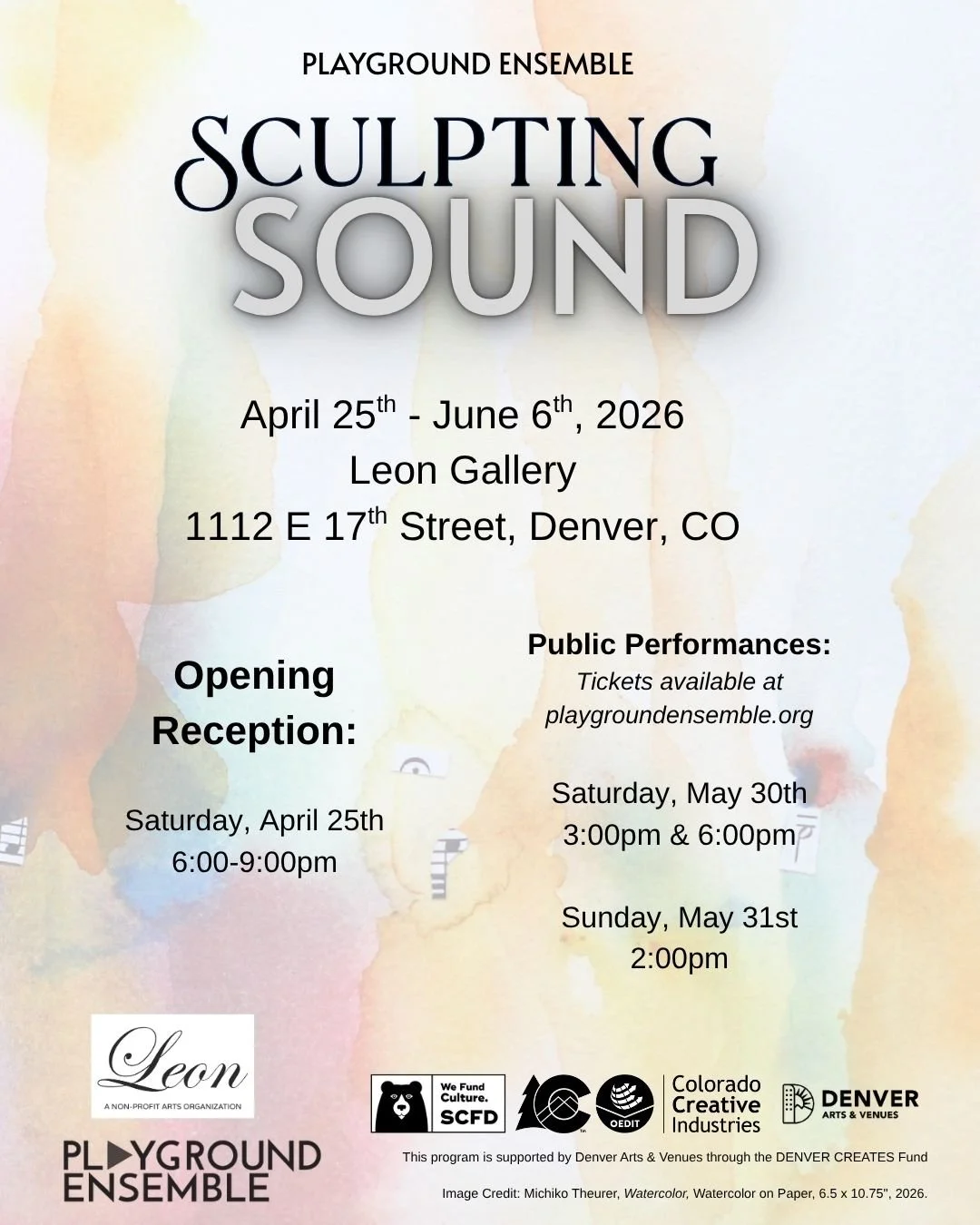 In collaboration with Leon Gallery, the artworks and composers’ scores will be on public display from late April through the month of May, with an opening reception on April 25, 2026 from 6-9 PM. During the exhibition visitors will be allowed to interact and experiment with the artwork themselves.